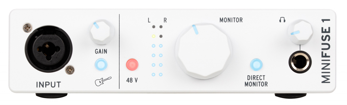 - Backlit controls: MiniFuse’s knobs light up in response to your input, turning red when the signal is too high