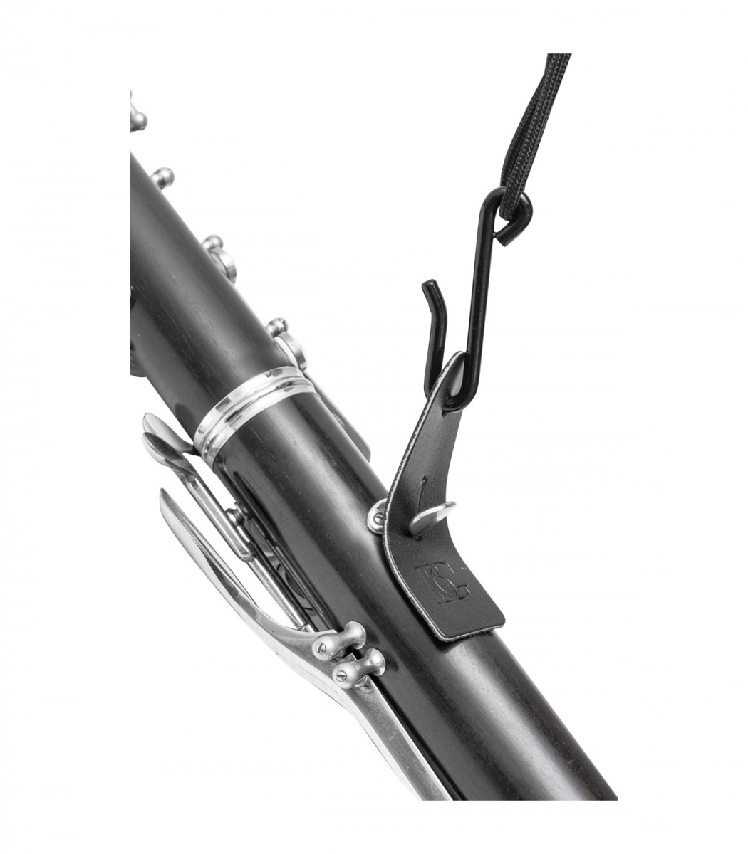 BGs klarinettrem avlastar utan att begränsa rörelsefriheten. Vadderat nackparti och metallkrok. Remmen är lite elastisk. Denna uppgraderade version har försetts med en längdjusterare som håller ut remmen så att den inte trycker mot halsen. Om du saknar fästring på din klarinett kan du trä någon av de medföljande läderplattorna över ditt tumstöd för att skapa ett fäste för kroken. Ersätter tidigare modellen C20E.