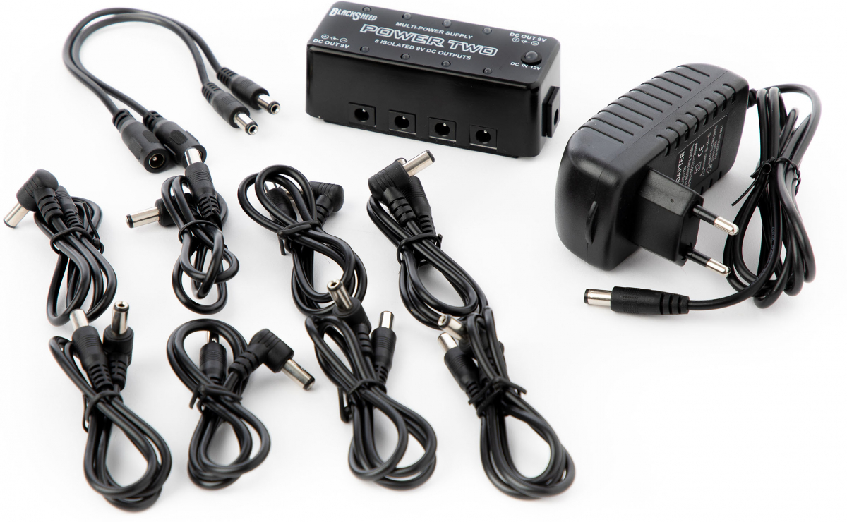 En 9V Power Supply för pedalbrädan på 2000mA, nog för att försörja en mängd pedaler. Den har 8 utgångar som kan leverera upp till 300mA var. En 12V nätadapter (100-240V) medföljer som driver Power Two, liksom pedalkablar i olika längder. Liten och smidig.
