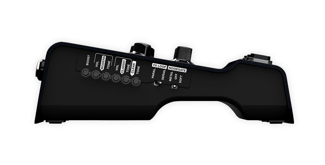 - Effects: Boost, Reverb (programmable), 2-stage Noise Gate