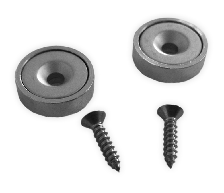 Set med magneter och skruvar för att montera AMP1 på ett pedalbord.