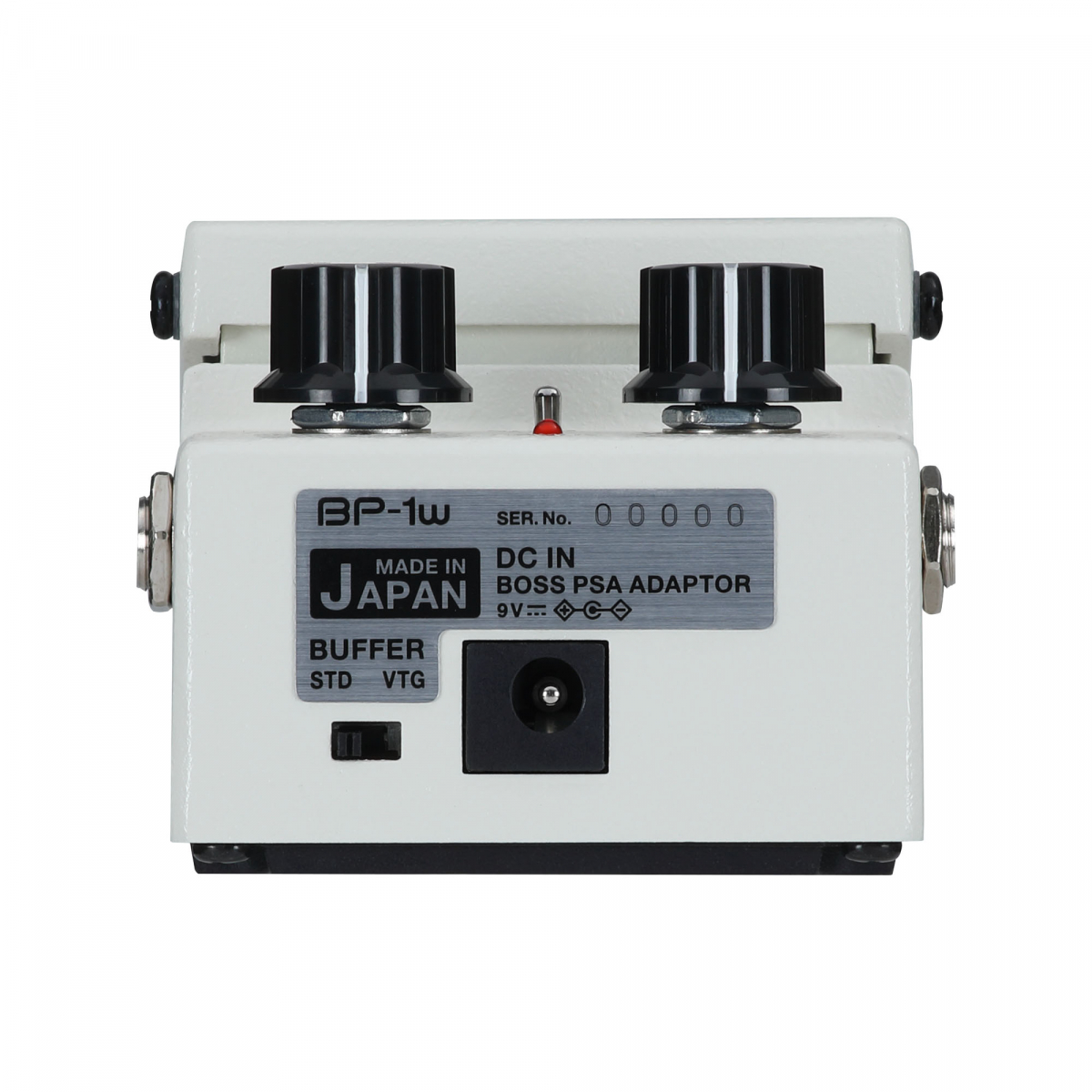 The BP-1W features high-quality buffer circuitry with two selectable types. Slide the rear panel switch to choose between the pure signal of a standard buffer or a vintage buffer with lower input impedance. The vintage type produces a warmer tone and a smooth dynamic response, with maximum benefits achieved by connecting a guitar with passive pickups directly to the BP-1W’s input. The standard buffer is always engaged for signal conditioning when the pedal is bypassed, regardless of the buffer switch setting.