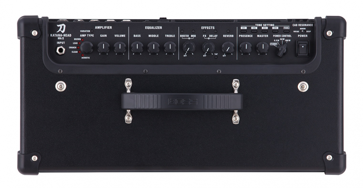 Omåttligt populära Boss Katana serien. Smidig och lätt topp på 100w som dessutom har en liten 5" monitorhögtalare inbyggd, för övning utan extern högtalare. Dubbelt så många förstärkarsimuleringar jämfört med förra versionen. Användningsområdena har även utökats - med slutstegsingång för modellerare och multi-effekter, enkel stereoexpansion för dubbla förstärkare, uppdaterad editor-mjukvara och många andra förbättringar.