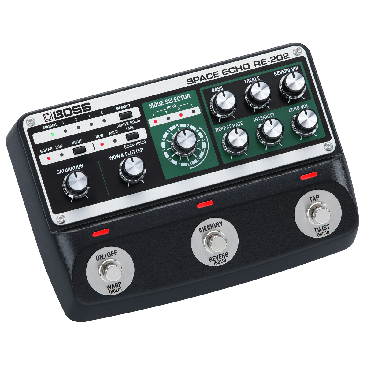RE-202 är förverkligad genom de senaste teknologierna och en omfattande analys av ett flertal vintage RE-201 - inklusive en originalenhet i nyskick från BOSS och Rolands fabriksarkiv och ger liv i den totala upplevelsen av ett Space Echo i en flexibel modern pedal.