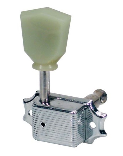 Set med stämskruvar till gitarr, 3+3 (3 vänster, 3 höger). Komplett med bricka och mutter. Vintage-style vred.