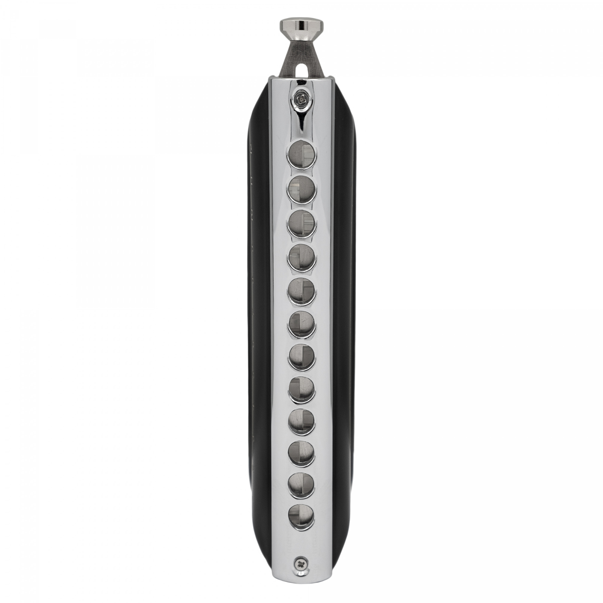 Kromatiskt munspel med 12 hål med 48 toner och ett omfång på drygt 3 oktaver vilket gör det mycket användbart. Munspelet har en solid och robust konstruktion med täckplattor och slide-funktion av rostfritt stål, stämplattor av mässing samt tonkammare av slitstark ABS-plast. Passar till musikstilar såsom folk, jazz, pop, blues och klassisk musik. Kommer i ett fodral och polerduk.