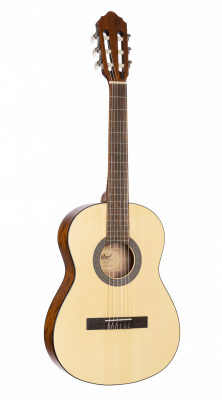 Nylonsträngad akustisk gitarr av utmärkt kvalité för nybörjaren som vill ha en stabil, lättspelad gitarr. Gitarren är 3/4 storlek, mindre och mer lättspelad för de yngre blivande gitarristerna. Granlock med mahogny i sidor/botten. Väska ingår.