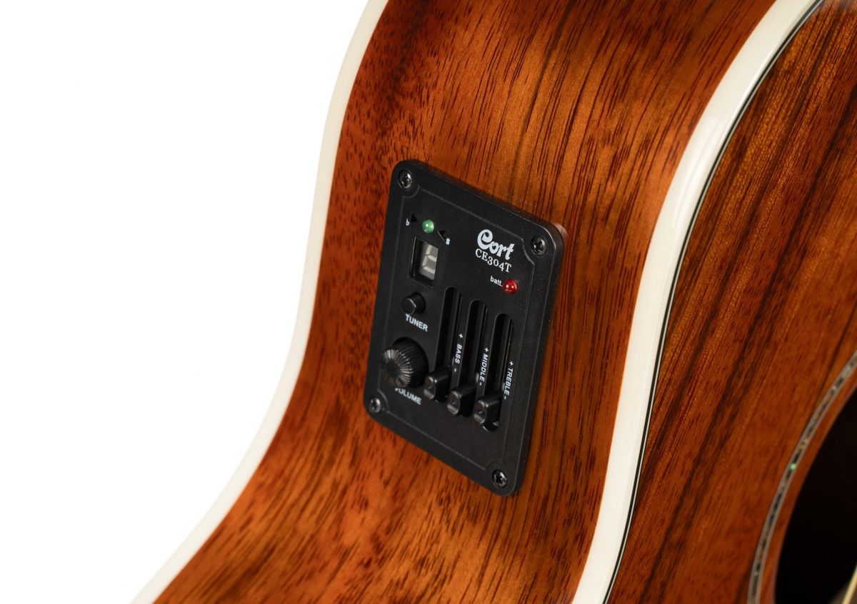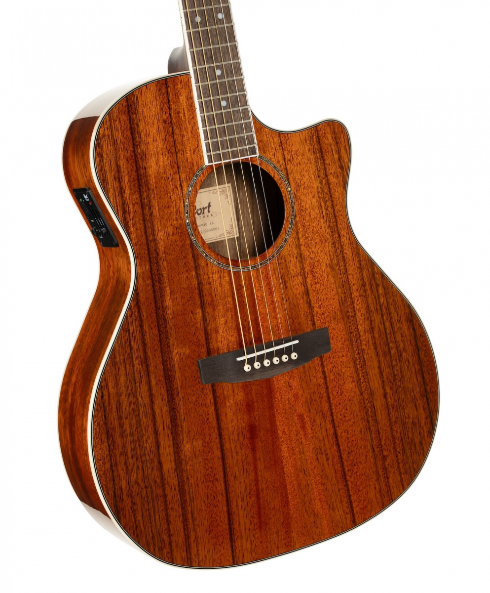 Stålsträngad akustisk gitarr från Cort. Grand Regal kroppstypen är smidig och lättspelad, samtidigt som den passar fint för både plektrum och fingerspel. Tillverkad i vackert exotiskt Dao trä. Gitarren har också ett inbyggt mikrofonsystem.
