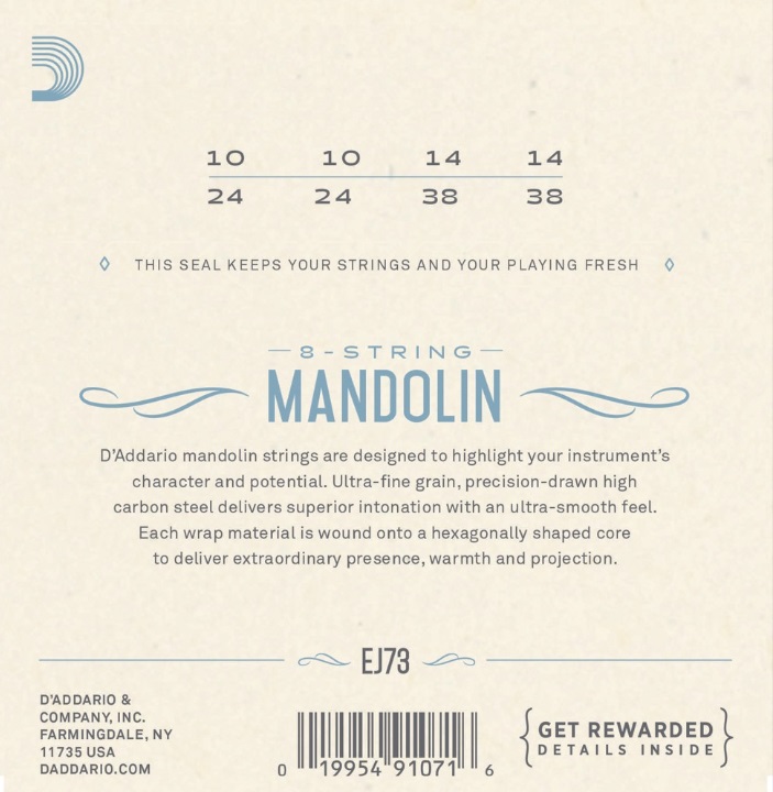 D'Addario's mest populära strängar för mandolin. Lindningen i Phosphor Bronze gör att du får en varm och mjuk ton som kompleterar din mandolins brilliga sound på ett väldigt snyggt sätt.