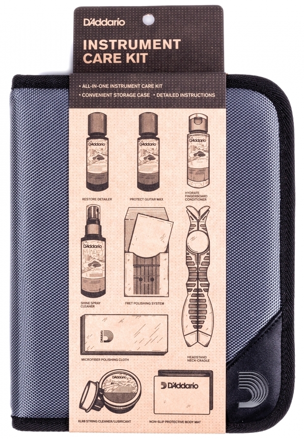 • D’Addarios bästsäljande tillbehör såsom: 3-step polishing system, Hydrate fretboard cleaner, Headstand, Microfiber polishing cloth, Fret polishing system, och XLR8.