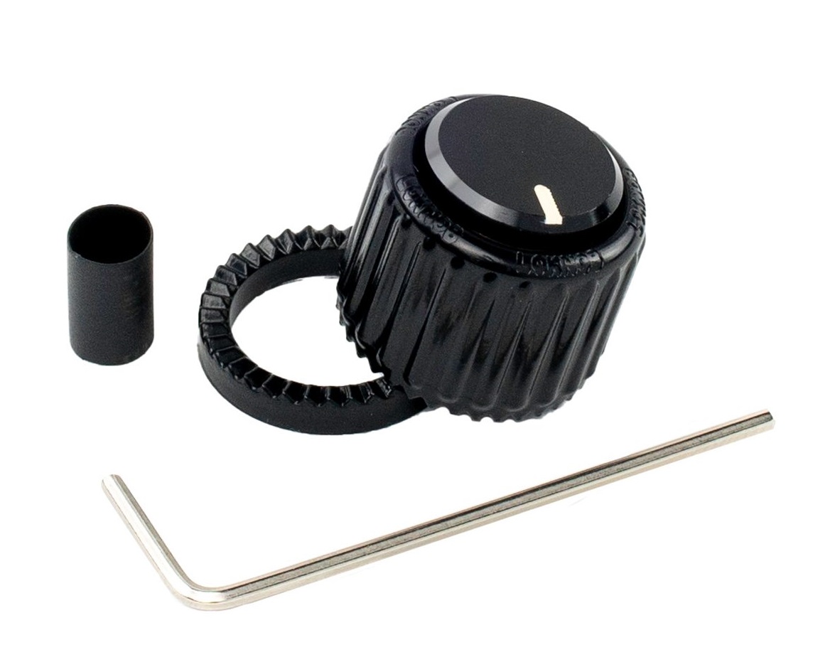 Låsbar ratt för pedaler, förstärkare eller vad som helst med potentiometer-rattar på. D'Addarios LOKNOB är låsbara utbytesrattar som gör att ens inställningar aldrig ändras av misstag. Men det är fortfarande enkelt att justera inställningarna om man vill det, man lyfter det fjäderbelastade höljet uppåt och vrider ratten till där man vill ha den alternativt klickar fram sina inställningar. Enkel att montera och det kräver inga bestående modifieringar (bara att den gamla ratten plockas bort).