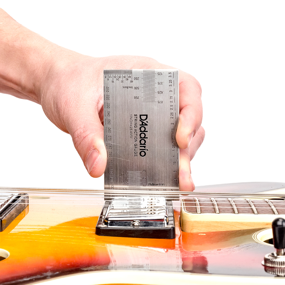 D’Addario string height gauge är ett ”allt i ett” verktyg för att kunna göra setup på dina instrument med högsta precision. Fördelarna är uppenbara. Istället för att gå på fingerkänsla kan du få exakt samma stränghöjd, relief och setup på alla dina instrument, alltid.