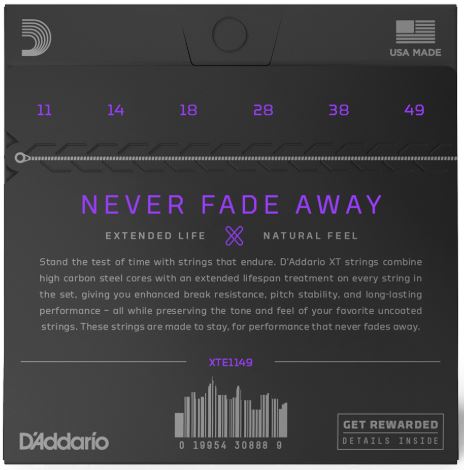 Varje enskild sträng i ett set XT är behandlad med D'Addarios skyddande mikrocoating, en supertunn ytbehandling som effektivt stöter bort smuts och svett. XT-strängarna varar 4ggr längre än traditionella o-coatade strängar utan att påverka den ton och spelkänsla som D'Addarios strängar blivit erkända för. D'Addarios unika stålkolkärna i kombination med en stark förankring av kulan, genom sk Fusion Twist technology, ger en sträng med oöverträffad styrka och som håller stämningen avsevärt bättre än vanliga strängar.