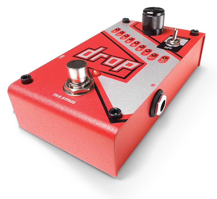Droppa stämningen utan att stämma om ditt instrument! Behöver du snabbt sänka tonarten men vill slippa krånglet med att stämma om din gitarr eller bas? Digitech Drop låter dig stämma ner ditt instrument i upp till 7 halvtonssteg (en kvint) och ger dig dessutom möjligheten att dyka ner en hel oktav. 9V Strömadapter ingår!