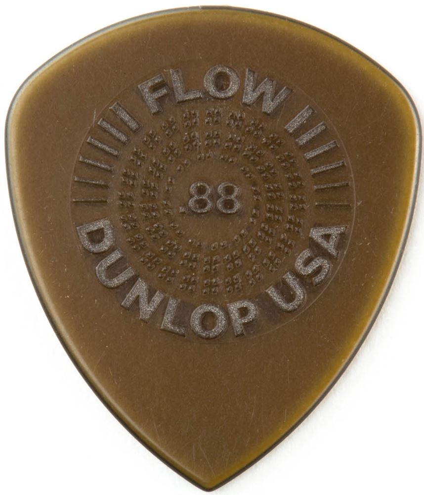 Dunlops Flow plektrum ger fyllig ton och volym till varje not som du spelar samtidigt som plektrumet enkelt glider över strängarna. Ultexmaterialet ger rika och tydliga övertoner och är rundat så spelandet blir så enkelt som möjligt. Flowplektrumen har även ett lågprofiligt mönster för bättre grepp och kontroll utan att det skall kännas jobbigt för fingrarna.