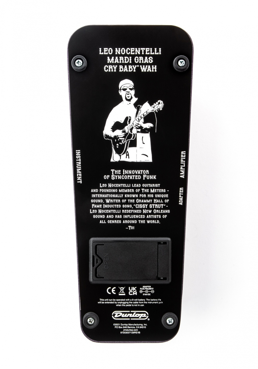 The Cry Baby Mardi Gras Wah är en hyllning till funkmästaren Leo Nocentelli – gitarrist och grundare av det legendariska bandet The Meters. Pedalen är klädd i djup lila metallic, glittrande guld och "cash-money" grönt med svärdsliljesymboler. LN95 har en lägre frekvens för att skapa de varma melodiösa tonerna Leo är känd för att servera. Nu kan du skapa samma soulfood-funk som Leo med lika mycket magi i fingrarna.