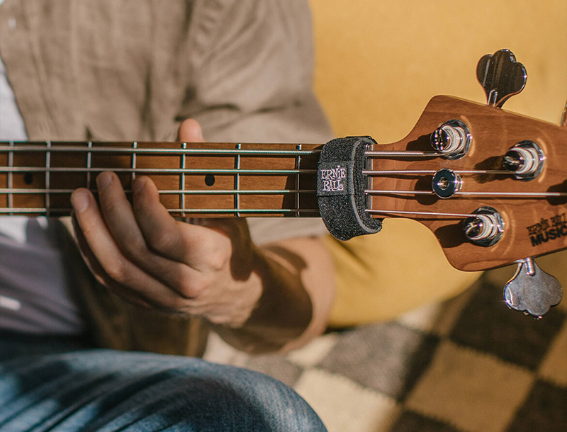 Dämpa bort övertoner enkelt och effektivt med strängdämpare från Ernie Ball. Sätts ovanför översadeln.