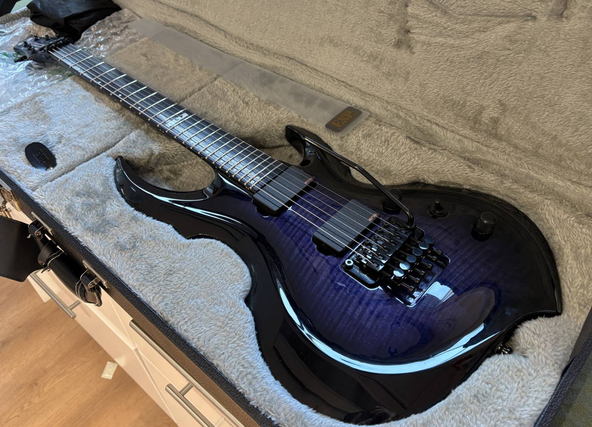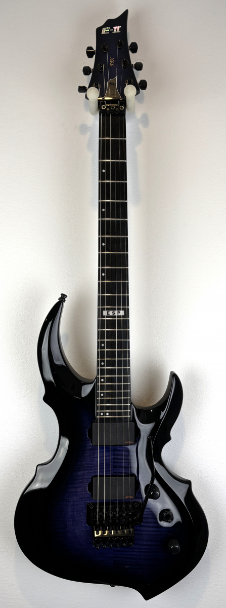 Begagnad ESP E-II FRX från Japan i väldigt fint skick, någon enstaka ding. Bandstavar i närmast perfekt skick, spelar utmärkt och riktigt välbyggd. Original hardcase ingår, justeras av tekniker innan leverans. Alltid 3 månaders garanti på begagnat!