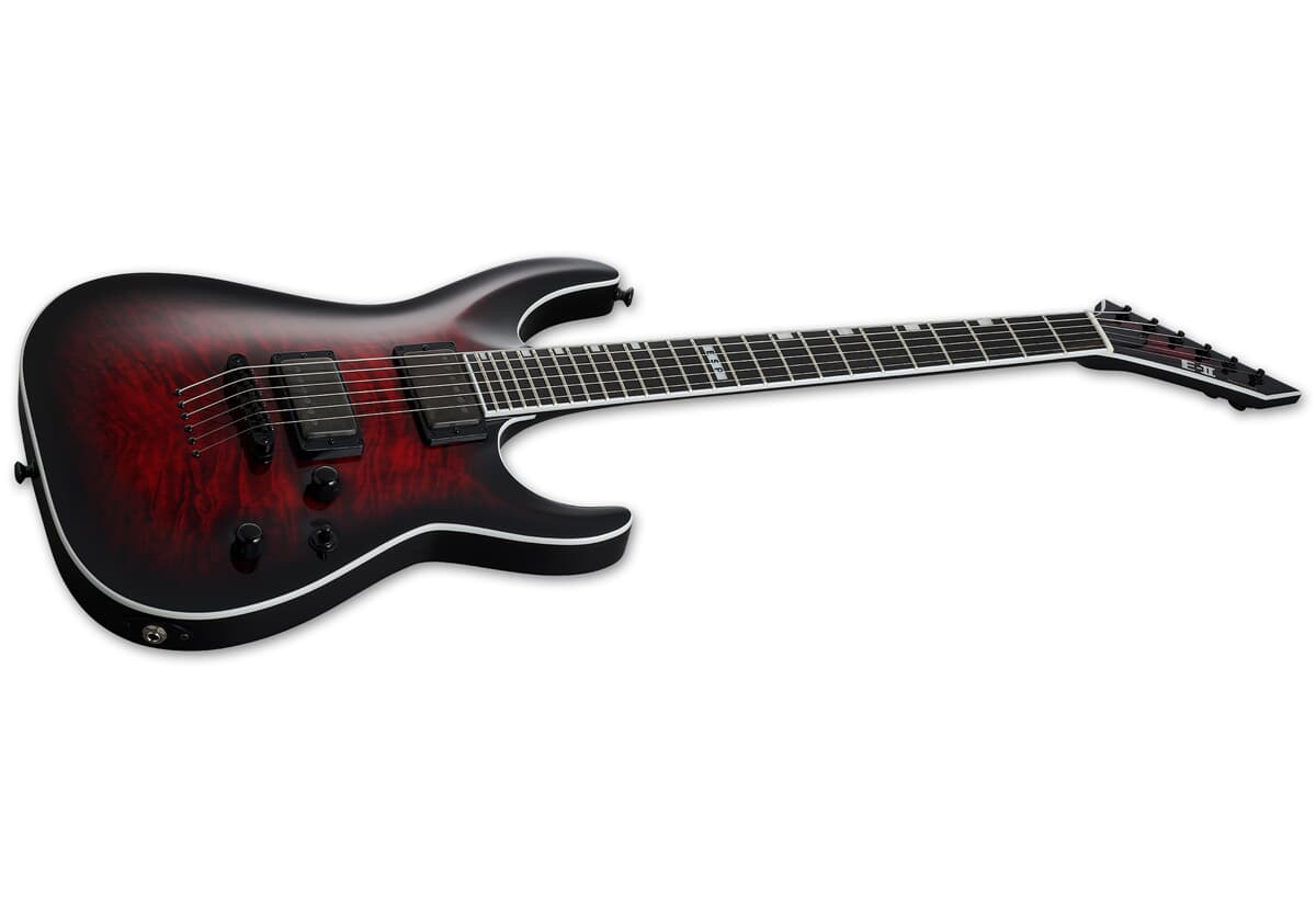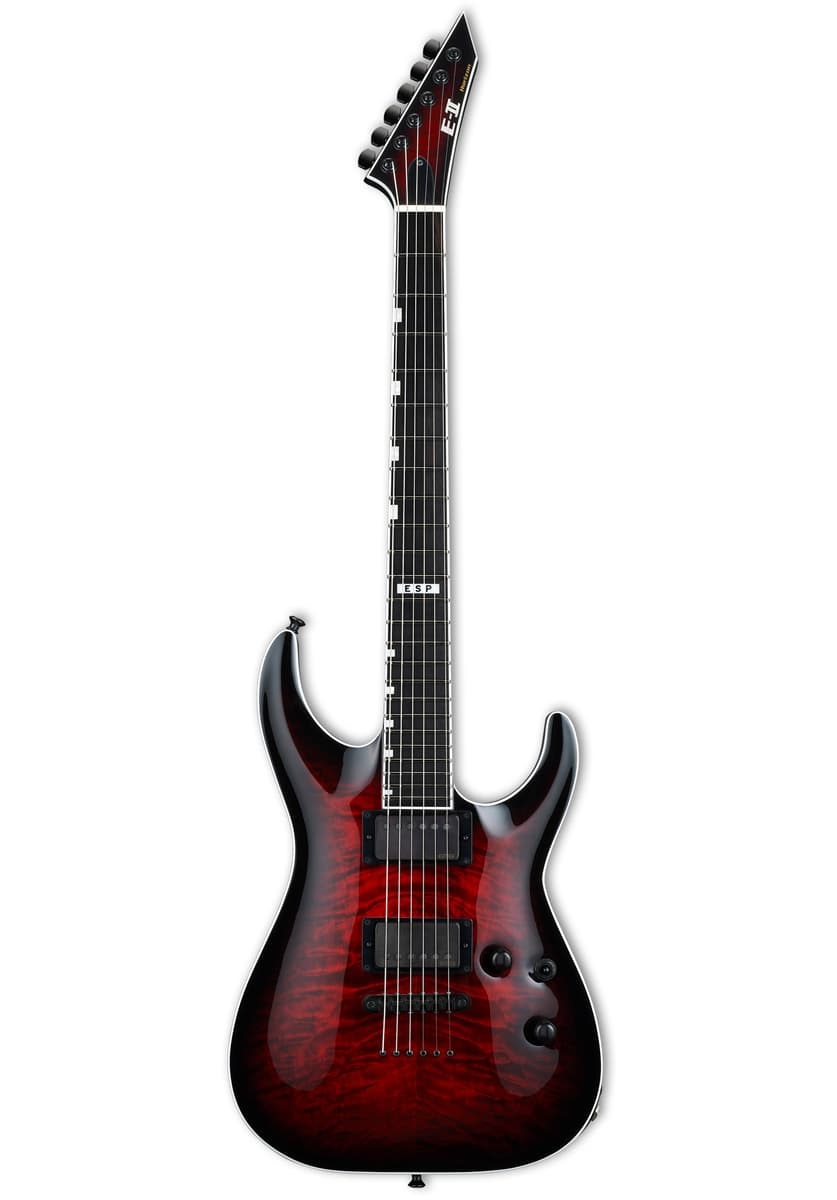 E-II Horizon NT-II finns i färgen See Thru Black Cherry Sunburst och har en neck-thru-body-konstruktion med en mahognykropp och en välvd quiltad lönntopp. Halsen är tredelad lönn och har en ebenholtsgreppbräda med 24 extra-jumbo band och offset block-inlägg, samt en satinfinish på baksidan för en extra mjuk spelkänsla.