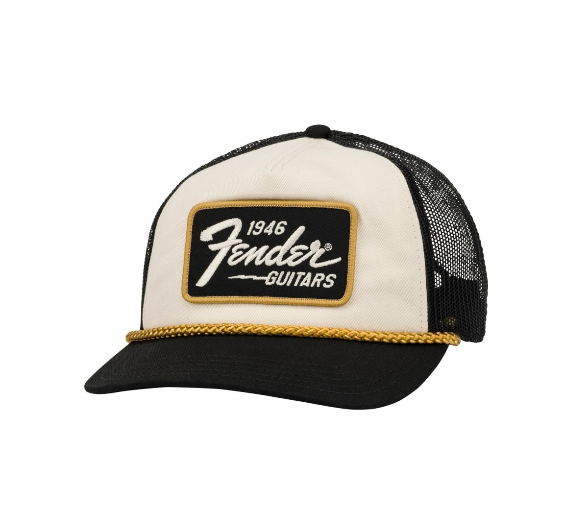 - Cream cotton twill front, hard black mesh back