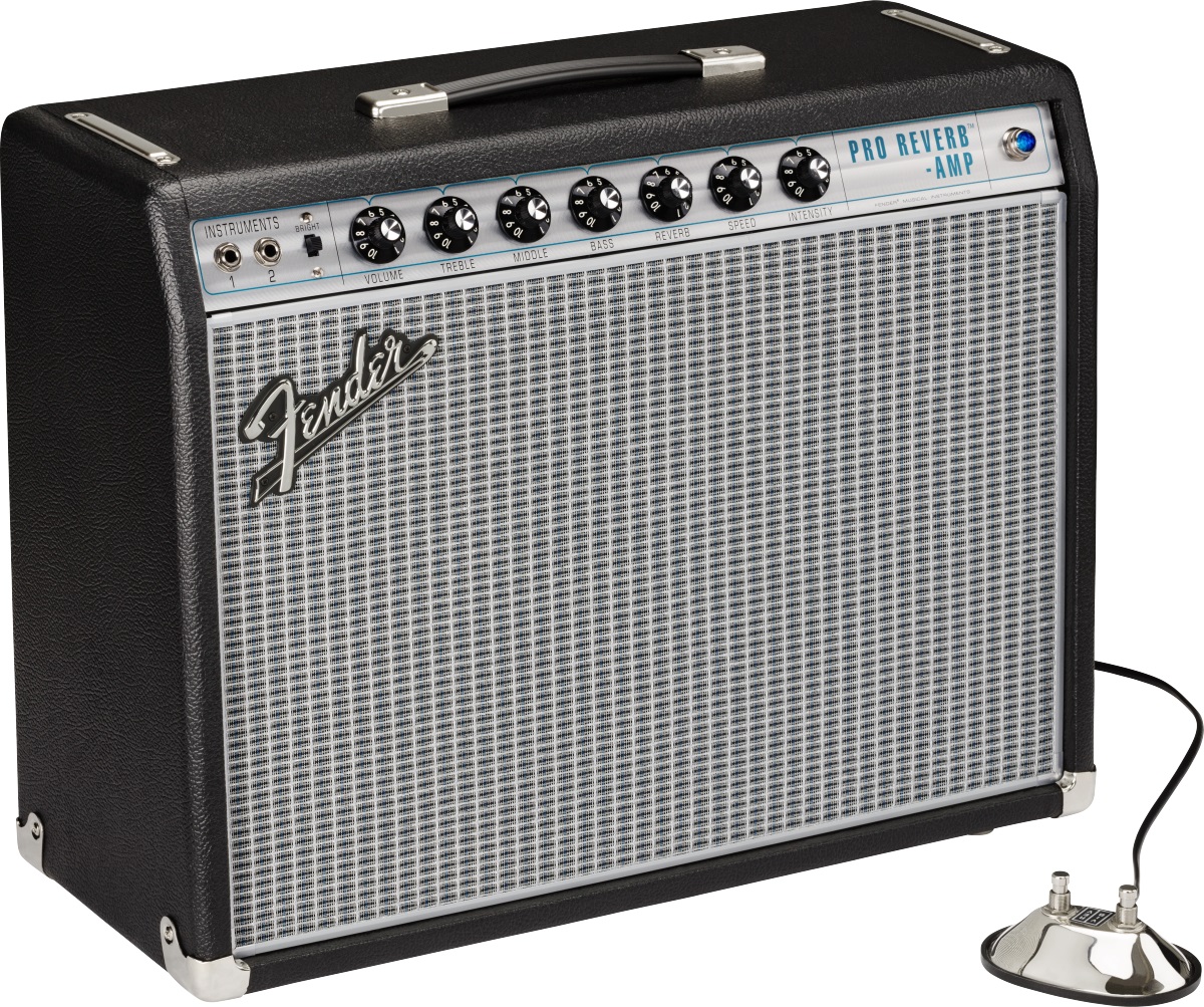 The ‘68 Custom Pro Reverb™ takes its cues from the original 40-watt model, improving its portability and tonal flexibility by reducing the cabinet size and weight, moving to a single-channel format and single 12” speaker, and adding a middle tone control. This refined and upgraded amp is the perfect size and volume for almost any gig, and may be the ultimate pedal-friendly platform.