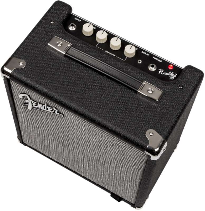 For bassists everywhere at all levels, Rumble bass combos are re-engineered to be astoundingly compact, portable and lightweight, with seismic Fender bass tone and stage-worthy features. The diminutive Rumble 15 pumps 15 watts of pure Fender bass tone. Small but loud, it's built with great features including classic Fender styling, 8" speaker and three-band EQ, and is a great practice amp.