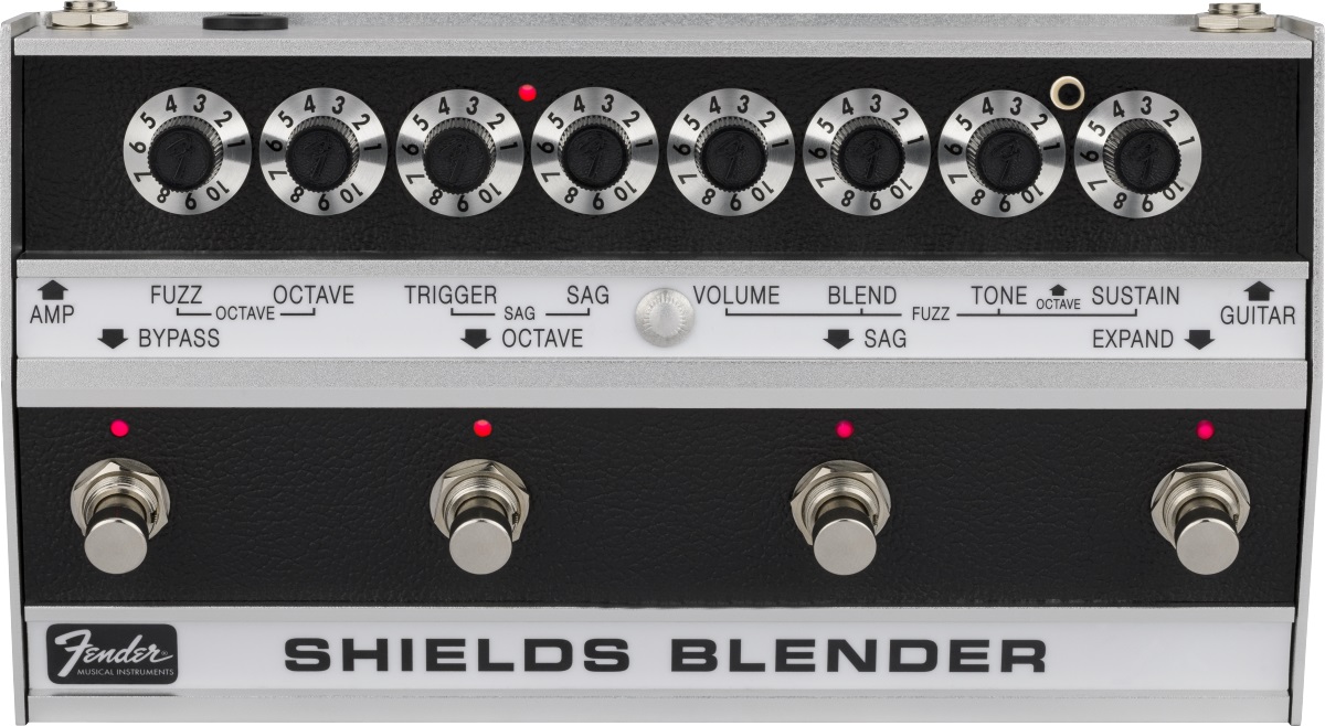 At its core, the Fender Shields Blender echoes the tone of Shields' own vintage 1970s Fender Blender, thanks to carefully hand tracing the circuit from his personal fuzz box. Built around this vintage circuit are entirely new ways of controlling and blending the original fuzz voice, all crafted with performance in mind utilizing four easy-access footswitches. Two footswitchable channels of fuzz, each with dedicated level controls, offer the ability to blend the fuzz voice with your clean signal or to blend the fuzz voice with a beefy suboctave fuzz, while the sag footswitch introduces sputtering and ducking effects like never before heard, all controlled by the intensity of your playing dynamics.