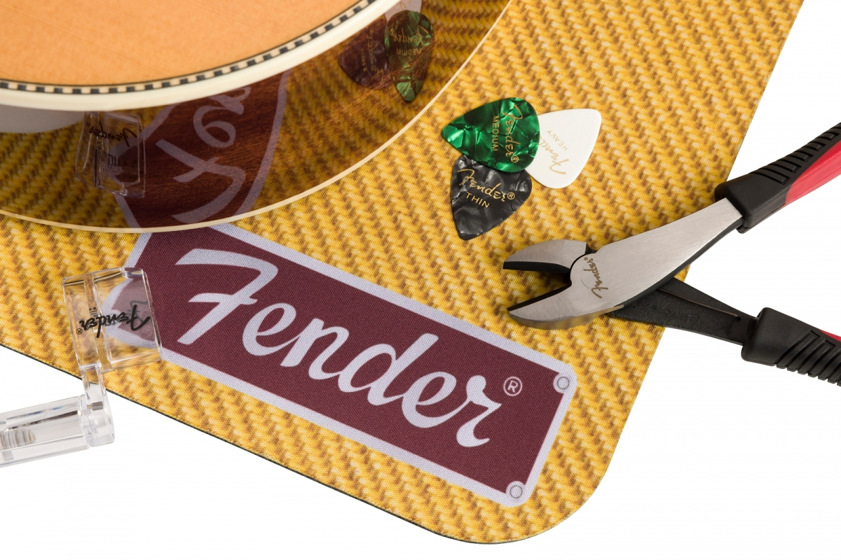 Arbetsmatta som är säker för alla typer av finishar. En vagga för att hålla halsen på gitarren ingår.
