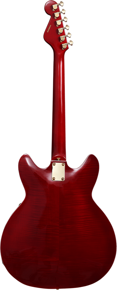 Klassisk modell med ihålig kropp av laminerad lönn & hals av maple med greppbräda i Resinator Wood. Hagströms Dual Coiled Mini-Humbuckers levererar ett sound som tar dig tillbaka till rockens gyllene period men som moderniserats med push/pull-kontroller så du att splitta mickarna för möjligheten till ett modernare & mera varierat sound.