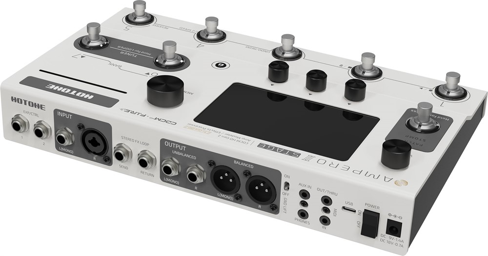 rawing from Hotone's experience and user feedback, Ampero II Stage boasts a fresh UI design combined with a spacious 5-inch dynamic color touchscreen. It offers a highly intuitive and smartphone-like interaction, ensuring seamless control and configuration.
