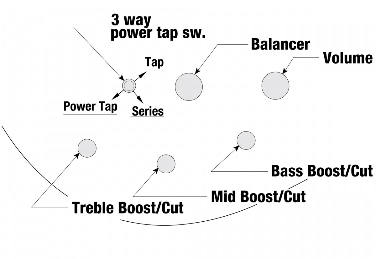 Det är bestående av en boost/cut för bas, diskant och mellanregister samt en 3-vägs Tap switch för omkoppling mellan Humbucker-Single-Enhanced Single.