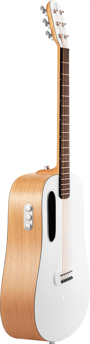 Akustisk stålsträngad gitarr tillverkad i HPL, högtryckslaminat, som är ett stabilt och miljövänligt trä-laminat. Gitarren har inbyggda effekter som kan användas helt akustiskt utan att koppla gitarren till någon förstärkare. Kraftig gigbag ingår.