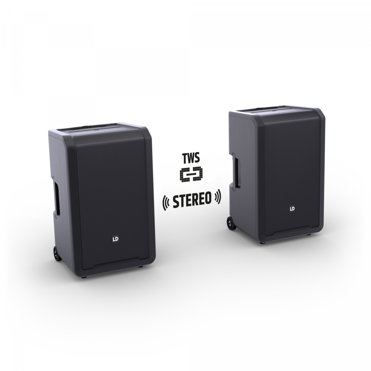 Utöver de mångsidiga användningsmöjligheterna kan två ANNY 12-högtalare kopplas ihop via True Wireless Stereo (TWS) för att ge ännu större fester och evenemang kraftfullt ljud.