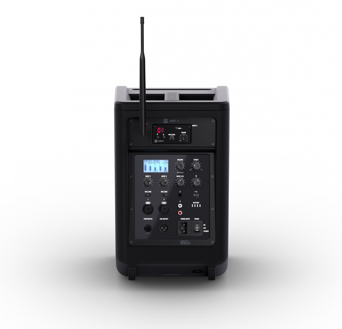 The ANNY® 8 HHD variant is already equipped with a wireless microphone – simply insert the included AA batteries and you're ready to go. The volume can be adjusted separately on the corresponding receiver module on the back of the ANNY. This expands your connection options by an additional input channel, giving you even more combination options.