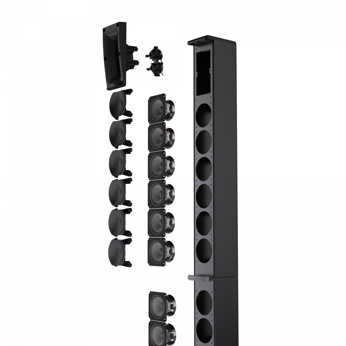 - Cardioid column for controlled low-mid and midrange sound dispersion