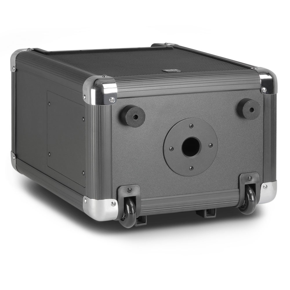 With built-in wheels and extension handles for carting convenience the LDRJ10 active 2-way system is your mobile sound station. It is powered by a rechargeable battery pack for up to 20 hours of continuous operation and provides a 90 Hz – 18 kHz frequency response with 100 watts of peak output.