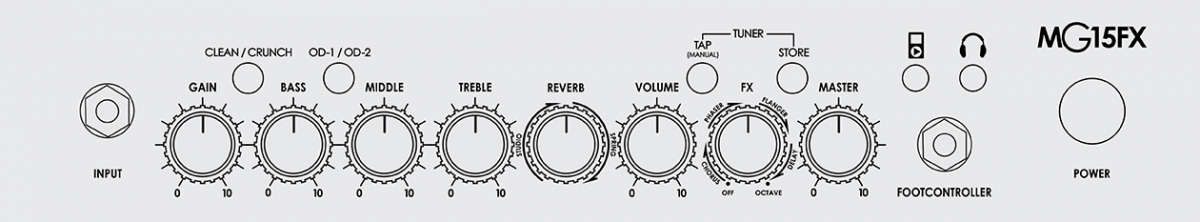 The MG15FX is loaded with a variety of digital FX including: reverb, chorus, phaser, flanger, delay and octave.