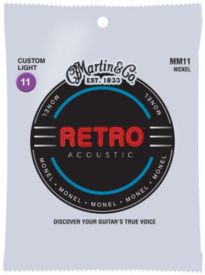 Martin's Retro strängar erbjuder en helt unik varm, rund och krispig ton som tillåter din gitarrs naturliga ton att komma fram. Tillverkade av Monel, en solid nickel och kopparlindning, gör att det finns noll chans för defekter i lindningen som kan påverka ljudet.