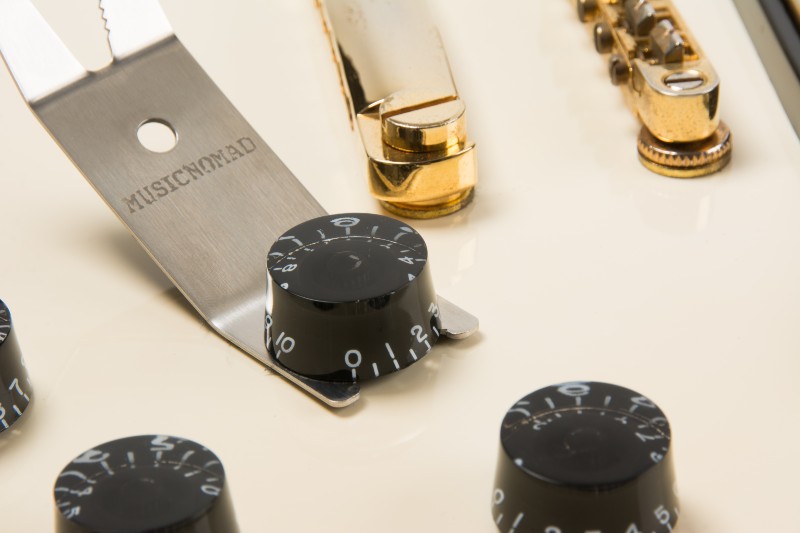 Enkelt verktyg som tar minimalt med plats i gitarrfodralet och har flera smarta användningsområden. Man kan använda den för att skruva åt dom flesta muttrar på en gitarr, även sådana som kanske blivit något deformerade eller inte är kantiga utan runda med lättrad sida. Utformningen gör att den även kommer in under ratten på volym- och tonkontroller så man kan skruva åt muttern på dessa utan att dra av ratten först. Den fungerar även att använda som en spårmejsel för större skruvar exempelvis på Tune-O-Matic stall.