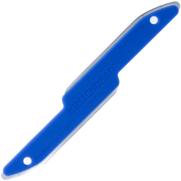 Denna innovativa fil är designad för att ge dig en jämn och konsekvent kröning av dina bandstavar, vilket resulterar i bättre spelbarhet och längre livslängd för dina band. Den diamantbelagda ytan och Safe Zone-tekniken vilket innebär att att den översta delen på filen inte har någon slipyta garanterar en säker och effektiv filning. Slipytorna som slipar åt båda hållen har en grovlek på 240 och är rundade för att på bästa sätt matcha formen på banden. De två olika slipytorna är anpassade för Narrow/Medium-band respektive Wide/Jumbo-band. MN850 fungerar på alla typer av band, och den fungerar på alla typer av bandade instrument även de med band i rostfritt stål. Likt alla filar slits dock filen snabbare när man använder den på rostfritt stål. Den bästa kröningsfil som vi testat i vår verkstad. Kostar en slant men det är den värd.