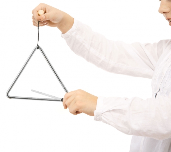 - Material: Ståltriangel som bärs av ett handtag i trä med nylonband