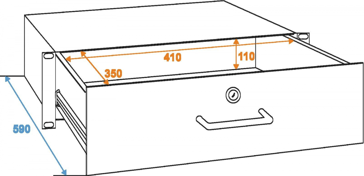 Stabil racklåda med lås, 3 höjdenheter.