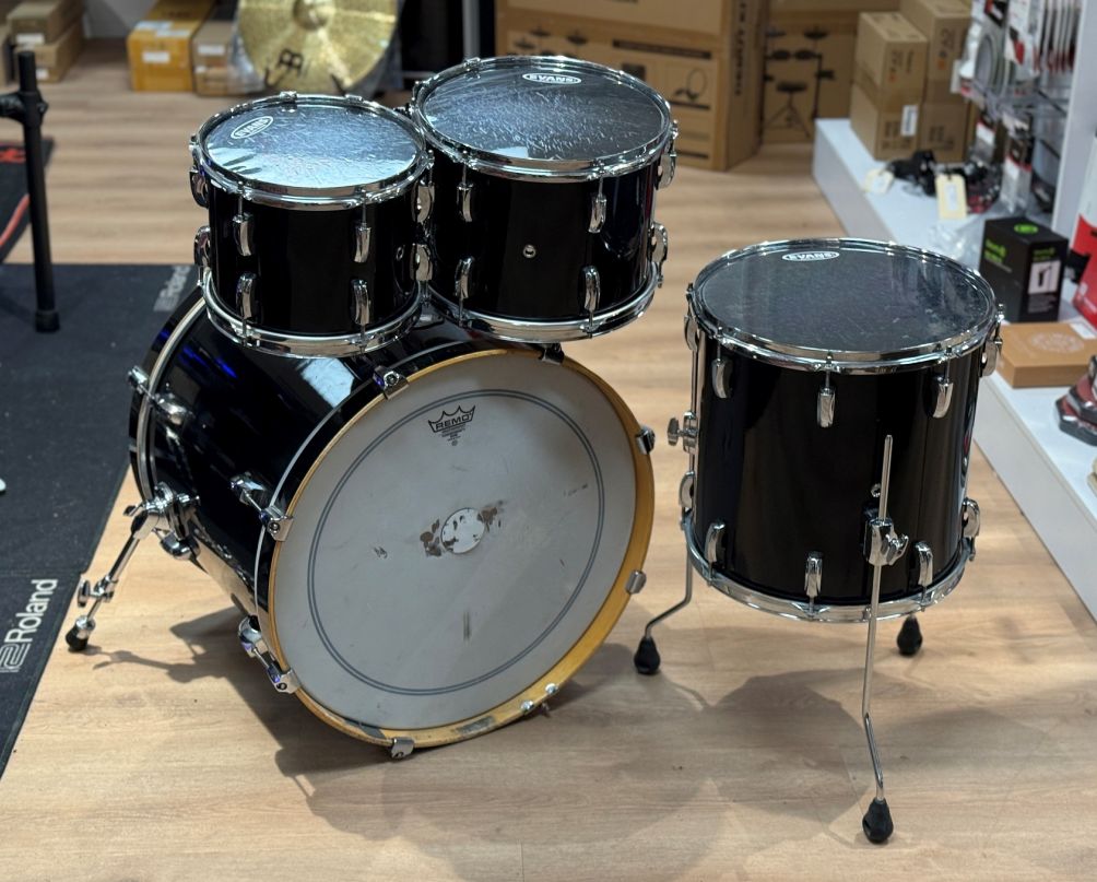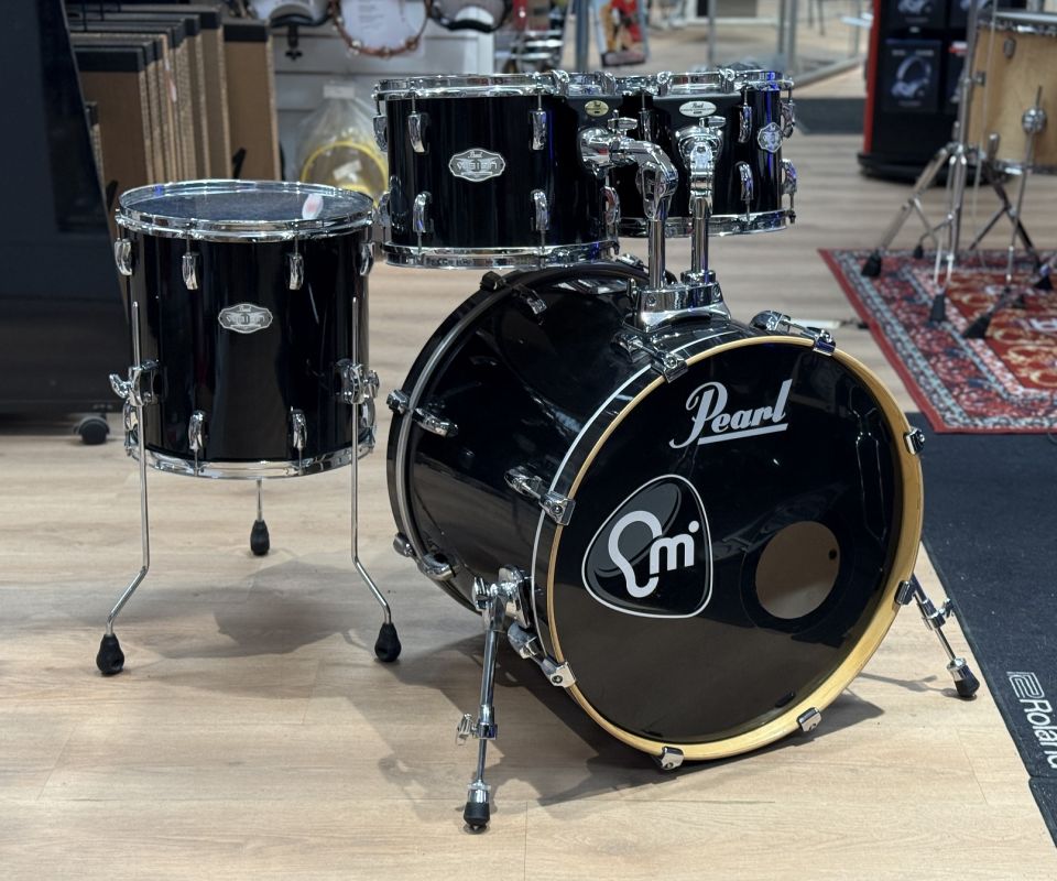 Pearl Vision med björk stommar i gott skick. Hängpukorna är 10x8" och 12x9", golvpukan är 14x14" och baskaggen 22x18". Armar till hängpukorna och ben till golvpukan ingår.