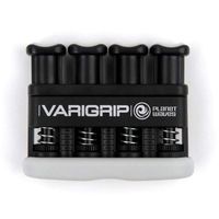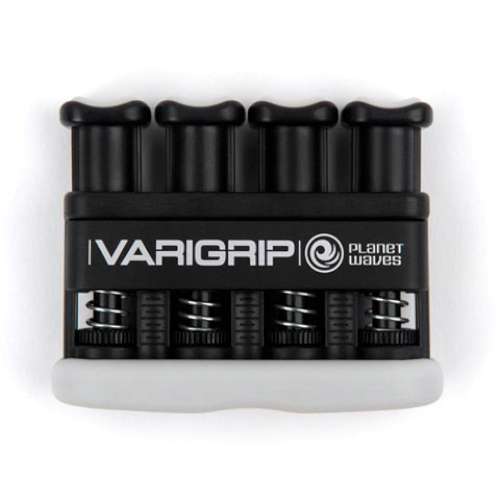 På Planet Waves Varigrip kan fjäderns hårdhet justeras individuellt för varje finger, från light till heavy. Ergonomiskt utformad för att ligga bekvämt i handen. Spår på undersidan simulerar strängarna på en gitarr och hjälper att utveckla teknik samt behålla förhårdnaden i fingertopparna. Praktiskt när man är utan sitt instrument för ett tag.