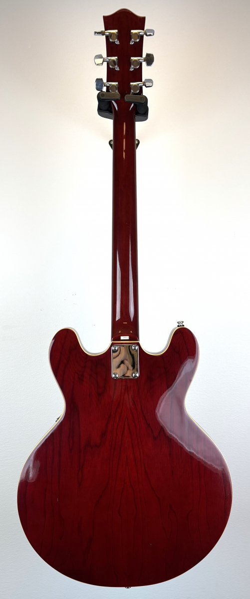 Begagnad Rämjes semi-akustisk gitarr i mycket fint skick. Minimal nötning på bandstavar, rak och fin hals. Lättspelad och låter fint. Justeras av tekniker innan leverans, alltid 3 månaders garanti på begagnat!