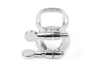 Klassisk rörhållare för klarinett. Tillverkad av nickel-pläterad mässing, med traditionellt två-skruvs utförande. Nu med fyrpunktstryck för jämnare tryck mot röret.