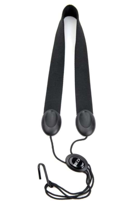 Rico saxband har en specialdesignad krok som håller instrumentet mycket bättre än vanliga krokar. Den unika snabbjusteringsknappen tillåter justering av bandet till exakt längd, snabbt och enkelt.