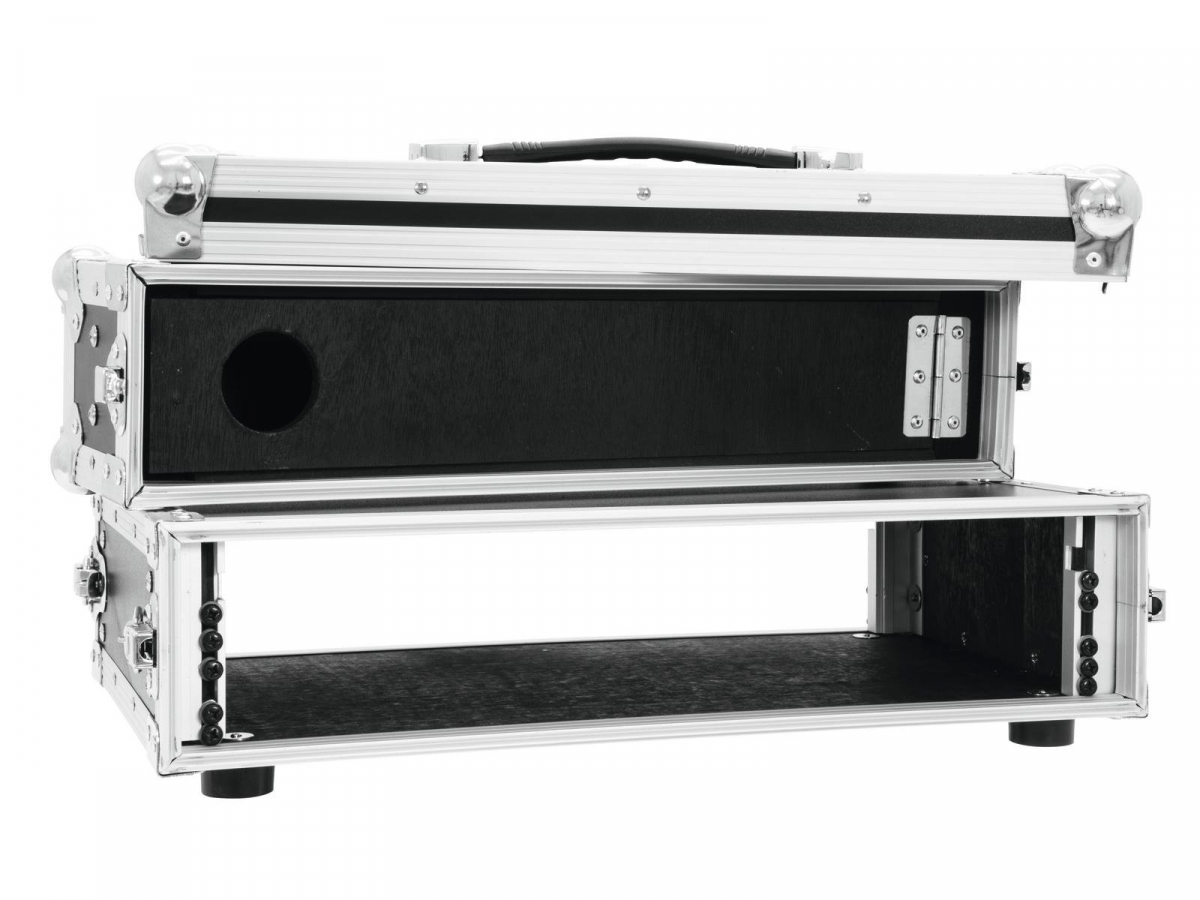 Stabilt och smidigt rack anpassat för trådlösa system, men fungerar såklart för all 19" rackutrustning. I bakre locket har man en extra förvaring för mikrofon, beltpack, headset eller kanske kablage.