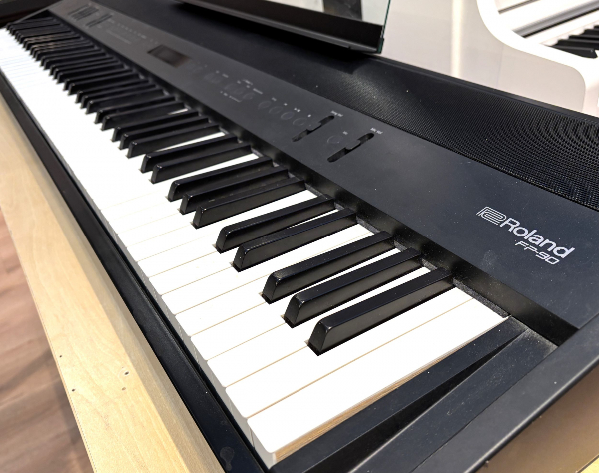 Begagnat Roland FP-90 stagepiano i mycket gott skick. Original Roland DP-10 sustainpedal ingår, och förstås även strömförsörjning och notställ. Kontrollerad och genomgången, alltid 3 månaders garanti på begagnat!