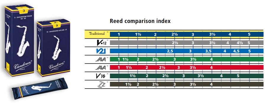 Designat för att ge extremt rent och krispigt ljud med mycket kropp och värme, tack vare sin tunna tipp och tjocka "hjärta" (centrum av den slipade delen). V5 Traditional har varit standardval för mängder av saxofonister i åratal och är vårt mest populära rörblad. Säljs i 10-pack med varierande styvhet, generellt så är ett mjukare rörblad att rekommendera för nybörjare då man lättare för ton i instrumentet.